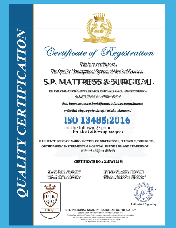 SPM SURGICAL is one of the prominent ISO 9001: 2015 W HOGMP and CE certificated company specializing in the production of operation theatre table and operation theatre led light in India which id continued to be the trendsetter throughout the year of history from the last 15 year we have created of a proficient niche both in the domestic and international medical industries with it products sold and to countries and regions like Europe the medical east south America, Africa and south east ASIA we have the privilege to design and distribute the most sophisticated and technological latest products in the services of medical profession our research and development department is continuously involved in designing and devolving better design and technical solution at the required standard by the customers We are empowered with an efficient workforce of the skilled and dedicated staff over manufacturing facilities are located in Delhi equipped with the latest machinery.